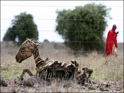 هزاران حيوان در اثر خشکسالی در کنيا تلف شدند. کنيا در شرق آفريقا واقع شده و بخش وسيعی از سرزمينهای خشک و لم يزرع اين قاره را در بر می گيرد.