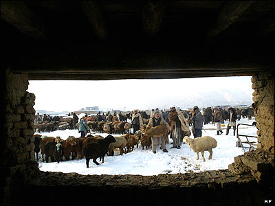 مردان افغان در حال خريدن گوسفند در آستانه عيد قربان