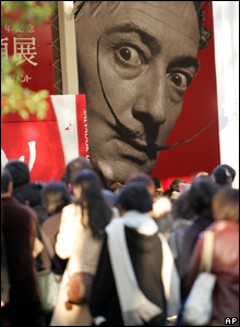 صف بازديد کننده گان نمايشگاه سالوادور دالی هنرمند اسپانيايی در توکيو. برگزار کنندگان اين نمايشگاه مناسبت آنرا صدمين سالگرد تولد دالی اعلام کرده اند.
