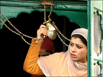 يک زن کشميری درحال دعا در خانقاهی در کشمير که به نام مير سيد علی همدانی مشهور به شاه همدان شناخته می شود.