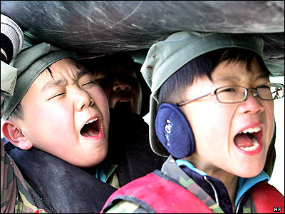 کودکان کره شمالی در يک اردوگاه نظامی زمستانی مشغول تمرينات نظامی