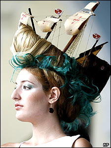 مانکنی در روز ملی سلمانی در هاوانا، پايتخت کوبا، مدل مويش را که از کشتی کريستف کلمب الهام گرفته شده نمايش می دهد.