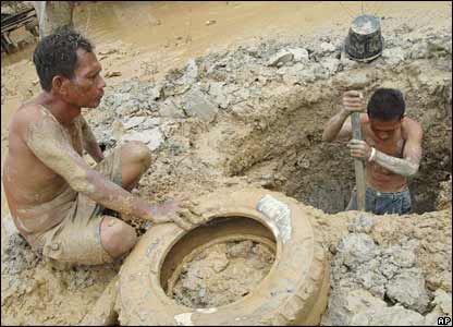 بازماندگان سيلاب های اخير در آچه اندونزی در جستجوی آب آشاميدنی زمين را می کاوند. هفته گذشته بيش از صد نفر در اثر لغزش زمين و جاری شدن سيلاب در اين منطقه کشته شدند.