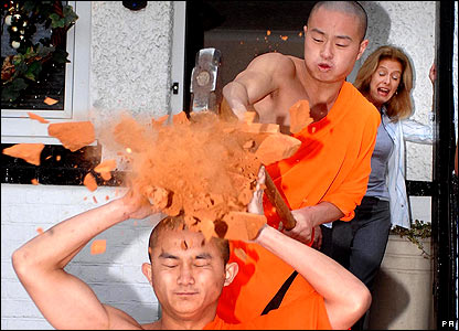 حرکات نمايشی گروه موسوم به "جنگجويان شائولين" از سيرک دولتی چين در بيرمنگهام، بريتانيا. |