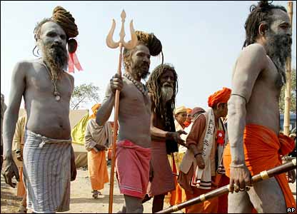 مرتاضهای هندو برای شرکت در يک مراسم مذهبی بزرگ در شهر الله آباد هند به اين شهر عزيمت می کنند.