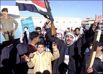خبر به دار آويخته شدن صدام حسين با شادی مردم در خيابان های شهر صدر از مناطق شيعه نشين بغداد همراه بود