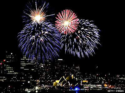 آتشبازی بر فراز ساختمان اپرای سيدنی در لحظه تحويل سال نو