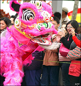 گروه رقص شير چينی در ميدانی در مرکز شهر تايپه مردم اين شهر را سرگرم می کند. هزاران نفر از مردم در اين ميدان برای مراسم تحويل سال ميلادی جمع می شوند.