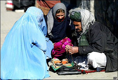 زنان افغان به پيشگويی های کف بين سر خيابان گوش می دهند.