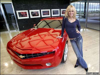 کری دی انگليش CariDee English، برنده يکی از شوهای تلويزيونی آمريکا، يکی از 16 نفری است که در افتتاحيه اين نمايشگاه به عنوان مدل در کنار يک نمونه از اتومبيل کامارو شرکت GM ايستاده است