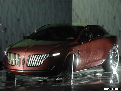 اتومبيل MKR از توليدات جديد شرکت لینکلن Lincoln که در روز افتتاحيه به صورت نمايشی حرکت می کرد