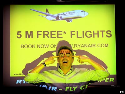 مايل اوليری، رييس شرکت هواپيمايی "رايان اير" - عرضه کننده پروازهای ارزان قيمت عمدتا به مقاصد اروپايی - در يک نشست خبری در دوبلين.