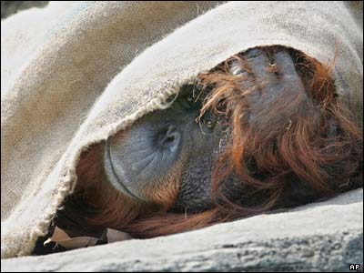 يک اورانگوتان در حال استراحت در سايه در تايپی تايوان.