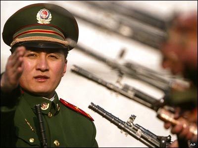 يک افسر شبه نظامی چينی در حال آموزش دانشجويان.