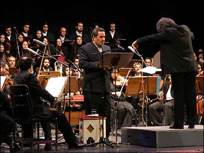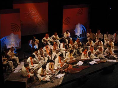 نمايی از اجرای گروه "خورشيد" به رهبری مجيد درخشانی در آخرين بخش از مراسم.