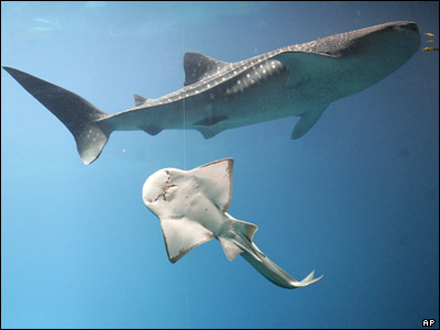 تصويری از يک کوسه نهنگی که بزرگترين گونه ماهی در جهان به شمار می رود. |