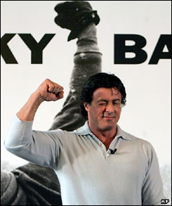سیلوستر استالونه، بازيگر آمريکايی، در مراسم نمایش ویژه جدیدترین فیلم راکی به اسم "راکی بالبوا" در پاریس