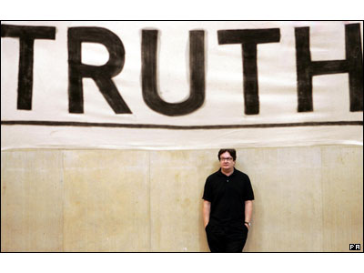 اثری هنری متعلق به مارک والینگر که در گالری هنرهای مدرن لندن "تیت" به نمایش گذاشته شده است. خالق این اثر می گوید که به دنبال مطرح کردن آزادی افراد و آزادی سخن است و از پلاکاردهای معترضین در مقابل پارلمان بریتانیا الهام گرفته است