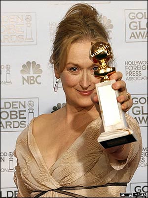 هلن ميرن، بازيگر بريتانيايی که در فيلم ملکه، نقش ملکه اليزابت دوم را بازی کرده، به عنوان بهترين بازيگر نقش اصلی زن در شاخه دراما برگزيده شد. او در اين مراسم برای بازی در نقش اليزابت اول در مجموعه ای تلويزيونی به همين نام، جايزه ديگری بدست آورد.
