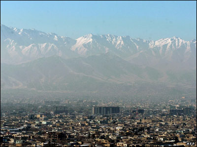 نمايی از شهر کابل، پايتخت افغانستان بعد از بارش برف در اين شهر.