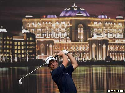 استيو وبستر بازيکن گلف از انگلستان در مسابقات قهرمانی گلف سال 2007 در ابوظبی.
