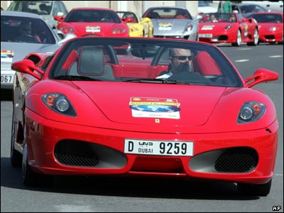 یکی از شرکت کنندگان در رالی صاحبان خودرو فراری که از امارت متحده عربی آغاز شده و در ایتالیا به پایان خواهد رسید. این برنامه به مناسبت شصتمین سالگرد تاسیس شرکت فراری برگزار می شود