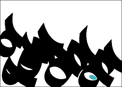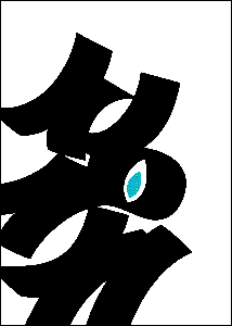 اين لکه چشم يا نگينی را در ذهن تداعی می کند. رنگ فيروزه ای رنگی است شرقی و ويژه آثار تجسمی ايران که در معماری و کاشيکاری های ايرانی بسيار از آن استفاده می شود.