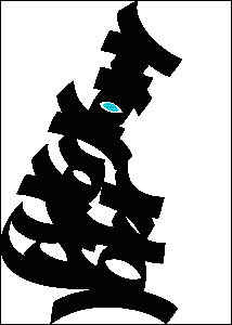 اين رنگ آرامش درونی را به انسان می دهد و نوعی معرف عرفان ايرانی است. روش آفرينش اين تابلوها با استفاده از ابزار خوشنويسی قلم های دانگ بالا( قلم های نوک پهن از ۵ سانتی متر تا ۱۰ سانتيمتر) و مرکب است که پس از خلق به وسيله کامپيوتر اديت نهايی بر روی آنها انجام شده است.