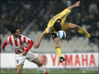 در مسابقات فوتبال دسته اول باشگاه های يونان، دو تيم AEK و المپياکوس در استاديوم المپيک آتن در برابر هم قرار گرفتند. اين مسابقه با تساوی سه بر سه به پايان رسيد.