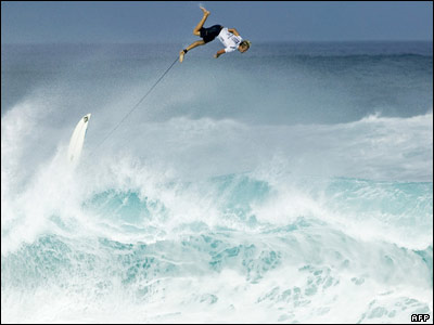 موج سواران پيش از برگزاری مسابقات قهرمانی ASP در سواحل اواهو در هاوايی به تمرين پرداختند. (تصويری از تمرين فلين نواک موج سوار اهل هاوايی)