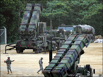 پرتاب کننده های موشک پاتريوت PAC-3 در مرکز هوايی کادنا، متعلق به ايالات متحده آمريکا در جنوب ژاپن، در راستای طرحی برای مقابله با حمله احتمالی کره شمالی مستقر شده اند.