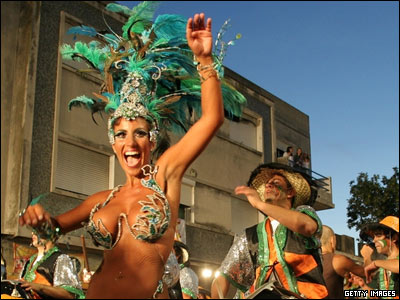يک رقاص در کارناوال لاماداس، بزرگترين جشنواره اوروگوئه، در شهر مونته ويدئو هنرنمايی می کند. |