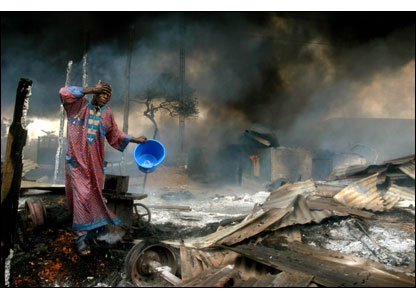 برنده اول تک عکس خبری: اکتينتونده اکينلی، عکاس نيجريايی ( رویتر) مردی را در حال پاک کردن صورتش پس از ترکيدن لوله گاز در لاگوس، پايتخت نيجريه نشان می دهد.