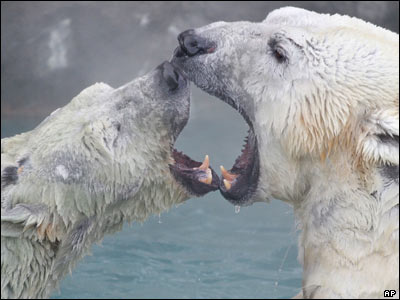 دو خرس قطبی در باغ وحش سین سیناتی با هم آشنا می شوند. مسئولین باغ وحش امید دارند این د از هم خوششان بیاید و با هم جفت گیری کنند.