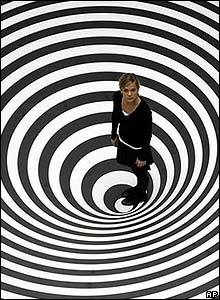 یک بازدیدکننده، روی اثری از هنرمند ایتالیایی، مارینا آپولونیو در موزه Schirn فرانکفورت ایستاده است. |