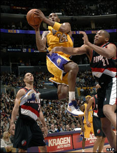 در مسابقات ليگ بسکتبال حرفه ای آمريکا، ان بی ای، پورتلند تریل بلیزر، لس آنجلس لیکرز را 112 بر108 شکست داد. اين مسابقه درسالن استیپلس، (کالیفرنیا) برگزار شد. کوبی برایانت از لیکرز به سمت سبد حمله می کند.
