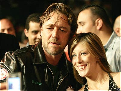 راسل کراو (چپ) با یکی از طرفدارانش در سیدنی استرالیا عکس می گیرد.