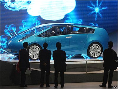 یک خودروی دو سوخته (هایبرید) ساخت شرکت تویوتا در نمایشگاه ماشین ژنو در سوئیس.