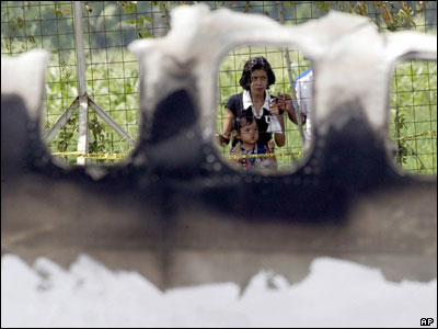 ناظران محلی کنجکاو به لاشه هواپیمای سقوط کرده اندونزی نگاه می کنند.