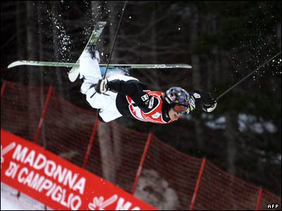 آندری وولکوف اسکی باز روس، در تمرینات رسمی قبل از رقایتهای جهانی اسکی آزاد در "مدونا دی کامپیلیو"، ایتالیا