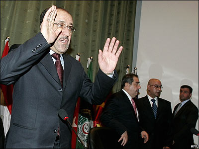 نوری مالکی، نخست وزیر عراق، پیش از سخنرانی افتتاحیه نشست امنیتی بغداد که امروز به منظور تلاش برای برقراری ثبات و امنيت در عراق برگزار شد.