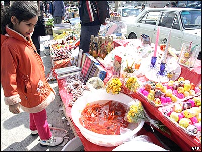 اسفند ماه و روزهای آخر سال مهمترین فصل خرید در ایران است و تقریبا تمام خانواده های ایرانی سهمی از این بازار دارند. همه ایرانی ها در سبد خرید سال نو سهم دارند و چیزی برای سال نو می خرند یا کسی برایشان می خرد. از لباس و خشکبار و میوه گرفته تا هدایایی که به عنوان عیدی داده می شود. آلبوم عکس زير نمایی از بازار پر رونق خريدهای نوروزی در خيابان های تهران است.