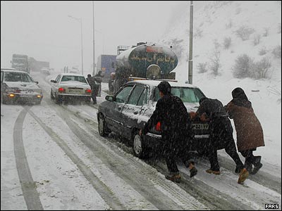 بارش سنگين برف در جاده فيروزكوه در گردنه گدوک، موجب بسته شدن راه شده است.