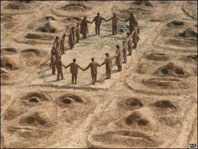 هنرمندان چينی در کنار مجسمه های خاکی که در شهر ژنگ ژو ساخته اند و در کنار آن به خواندن سرودهای ميهنی مشغولند.