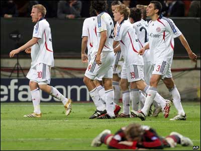 دیدار رفت مرحله یک چهارم نهایی جام قهرمانی باشگاه های اروپا، بین دو تیم آث میلان و بایرن مونیخ در میلان برگزار شد. این بازی با تساوی دو بر دو به پایان رسید.