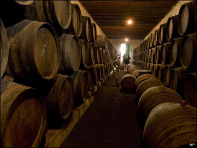سال ها پیش در یک حادثه طبیعی اغلب تاکستان های معروف جزایر قناری از بین رفتند. در عکس فوق، بشکه های شراب به عمل آمده از معدود تاکستان های باقیمانده در این جزایر دیده می شوند.