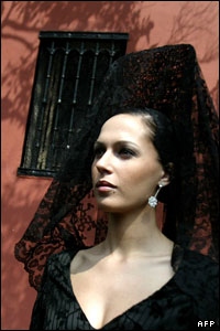 زنی با پوشش سنتی اسپانیایی در شهر سویلا مراسم مذهبی ایام عید پاک را به جا می آورد.