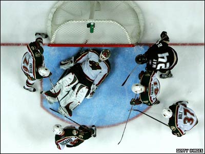 در مرحله یک چهارم نهایی قهرمانی هاکی روی یخ غرب آمریکا، دو تیم مینرسوتا وایلد کاورز و آناهیم داکز در کالیفرنیا به مصاف هم رفتند.