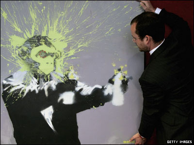 در نمايشگاهی هنری "خود چهره ای" از بنکسی، هنرمند خيابانی که به صورت ناشناس فعاليت می کند و بعضا به اتهام آسیب رسانی به اموال تحت تعقيب است، به حراج گذاشته شده که انتظار می رود حدود 60 تا 80 هزار دلار فروخته شود.