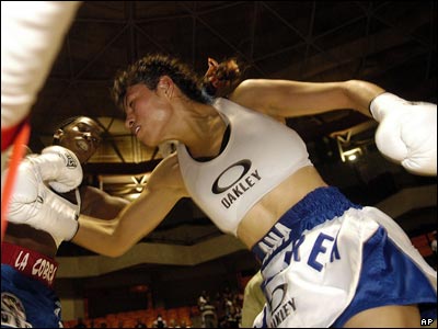 در مسابقات قهرمانی بوکس منهای 50 کیلوگرم زنان، آنا ماریا تورز (راست) از مکزیک، حریف خود داهیانا سانتانا از جمهوری دومینیکن را پس از هشت راند و با تصمیم داوران شکست داد. این مسابقه در سانتا دومینگو برگزار شد.
